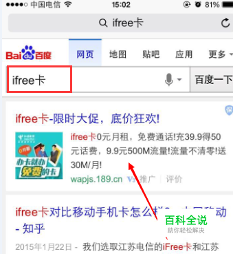 打开手机浏览器,在搜索框直接输入”iFree卡“,找到电信手机端官网,在第一页就有显示。