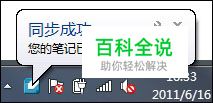 当托盘区出现图所示“同步成功”提示时,笔记已经安全保存了。有急事需要立即同步,也可通过点击界面上方的同步按钮得到更快的同步体验。