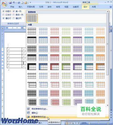 怎样在Word2007中新建表格样式