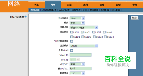 点击“网络”,点连接名称后面下拉菜单,选择一个连接名,称将3个已有连接都删除。由于本图为已经弄好的路由,连接的序号,以及各种选项都与电信猫初始的连接不一样。