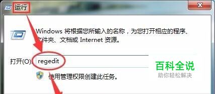 在“运行”框内输入“regedit”后点击确定