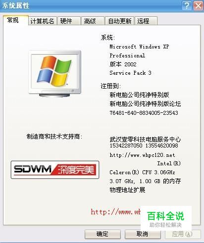 查看cpu跟内存,在桌面我的电脑上点击右键,选择属性。出来我的电脑属性,这里就能看到cpu型号跟频率大小。还有内存的大小,如下图所示,就是3.06的cpu跟1G的内存