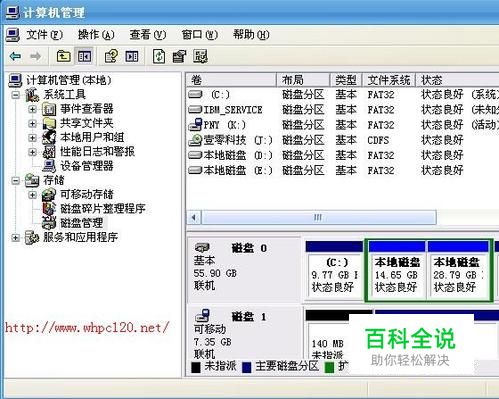 查看硬盘大小,硬盘可以通过我的电脑里的磁盘相加知道大概容量,不过不是很准确。可以在我的电脑上点击右键选择管理,再选择磁盘管理, 如下图所示,就是60G的硬盘,跟一个8G的U盘