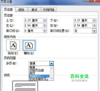 第2步,打开“页面设置”对话框,切换到“页边距”选项卡。在“页码范围”区域单击“多页”下拉三角按钮,并在打开的下拉菜单中选择“书籍折页”选项,如图所示。