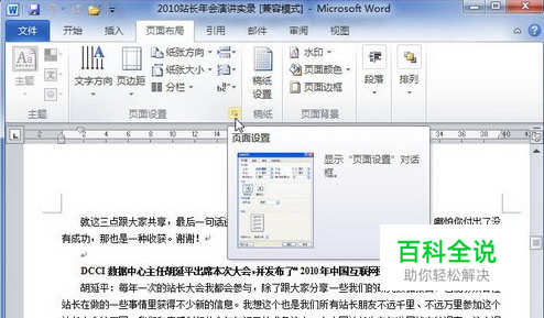 第1步,打开Word2010文档窗口,切换到“页面布局”功能区。在“页面设置”分组中,单击显示“页面设置”对话框按钮,如图所示。