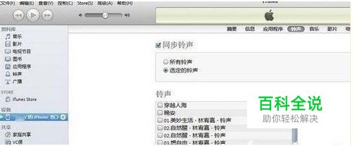 步骤一、先在电脑中安装itunes然后把iphone5s连接电脑,然后在itunes中设置“设备”然后在点击铃声的选项,在同步铃声前面打钩。