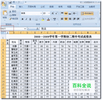 在EXCEL中选中要进行数据分析的数据区域,并定义区域名称,这里我们取名叫 test