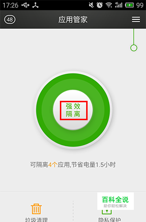 解决方法:1. 下载“ 应用管家”,一键隔离,把不需要应用隔离起来,就相当于把应用冰冻起来,应用将不再开启,将不会在后台运行,这样就减少了对电量和手机流量的消耗。