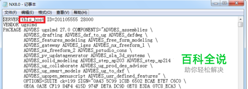 复制安装目录下CRACK/UGSLicensing文件夹下的NX8.0.lic到D:\program files\UGS\UGSlicensing,用记事本打开lic文件,修改the_host为你的计算机全名,保存文件