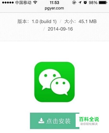 点击打开的网页“点击安装”,弹出的小窗口“ssl.pgyer.com”要安装“微信1”,选择安装。