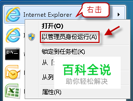 先关闭 Internet Explorer 浏览器,然后从开始菜单中找到 Internet Explorer,右击,选择“ 以管理员身份运行”。重新打开网站安装 ActiveX。 如果仍然不行请继续下面的操作