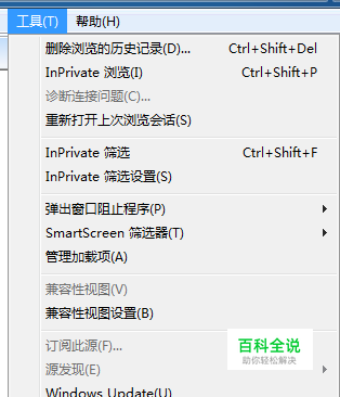 在键盘上按“ Alt+T”,然后单击“ 工具- Internet 选项”。