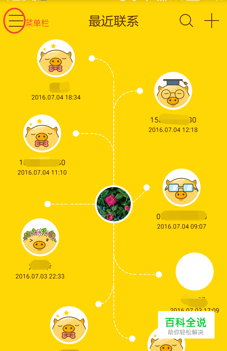 接着,打开视频来电显示软件,如下图所示界面,可以看到近期联系人。点击左上角菜单栏按钮,会自动出现下拉菜单选项,点击“来电秀”。