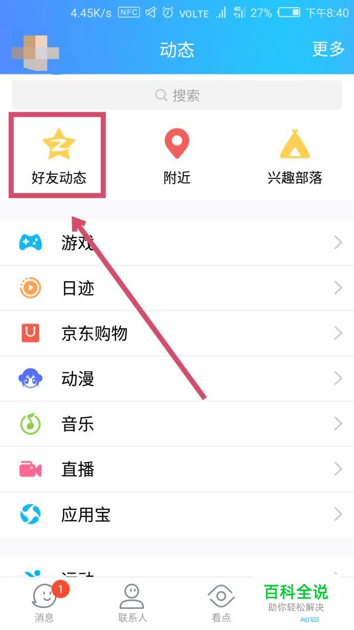 然后在界面左上角找到“好友动态”,点击进入。