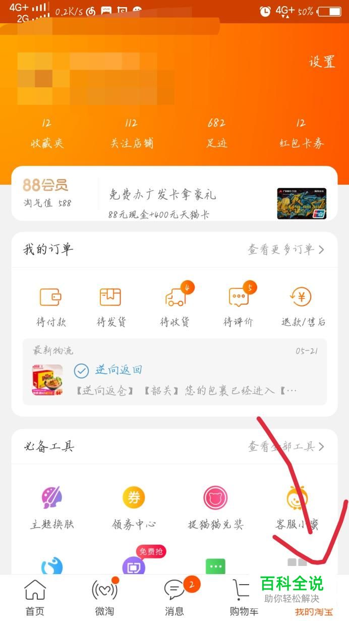 如果你网购了东西,并且确认收货后,可以在待评价那里有有红色的数字,如下图1箭头所示