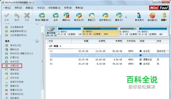 一般来说,要想增加计算机中硬盘分区的数量,很多计算机用户就会想到使用命令提示符工具,先通过压缩分区获取未分配空间,然后再在未分配空间中新建分区的 方式,来达到增加分区数量的目的。不过,对于计算机新手来说,命令提示符工具的操作方法非常的复杂,稍有不慎就可能会导致分区损坏,给大家带来更多的麻 烦。而使用MiniTool分区向导就不一样了,不但可以轻松的完成增加计算机硬盘分区数据的操作,而且软件具备的断电保护功能,还可能让用户避免由于计 算机突然死机,断电等问题带来的危害。使用MiniTool分区向导来分割硬盘分区从而达到增加硬盘分区数量的目的首先运行MiniTool分区向导,来到它的主界面,如下图所示:在主界面,大家应该选中需要分割的分区,然后点击界面左侧操作面板中的“分割分区”功能选项,就会进入分割分区的操作界面:进入这个界面以后,大家可以通过拖动红色矩形框中的分割按钮,来设定分割分区后两个分区的容量,完成这个操作以后,点击下方的“确认”按钮,这时,返回软件的主界面。最后,大家需要点击界面上方工具栏的“应用”按钮,然后等待MiniTool分区向导将所有的操作都执行完毕以后,计算机硬盘中分区的数量就成功的增加了。