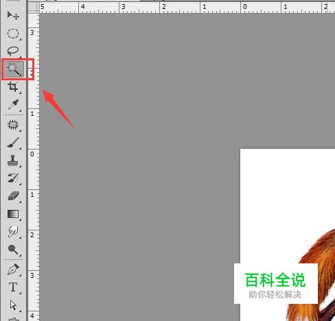 打开ps 将我们需要图片素材打开,然后选择需要抠图的图片在工具箱内找到魔术棒工具,如图所示: