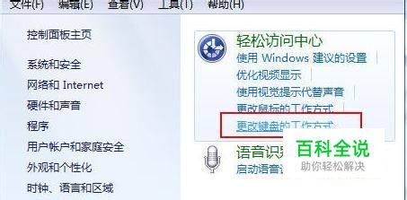 在“轻松访问中心”单击“使键盘更易于使用”。