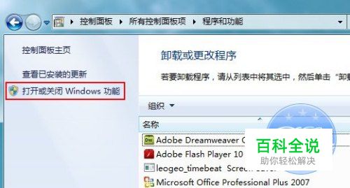 一、进入Windows7的控制面板,选择左侧的打开或关闭Windows功能。