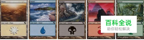 而与之相应提供该颜色的法术力源的地牌为平原,海岛,沼泽,山脉,树林,无色可由任意颜色或者无色的mana提供。