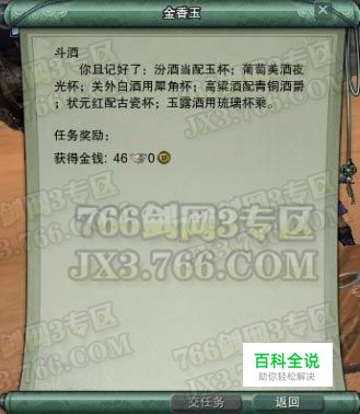 跟李复对话,看清楚李复他要喝的是什么酒,在桌面上选取对酒杯即可,反复对话10次即可