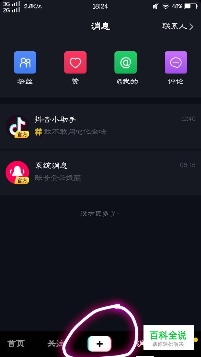 接下来,我们打开抖音以后,点击屏幕下方的“+”,并点击进入