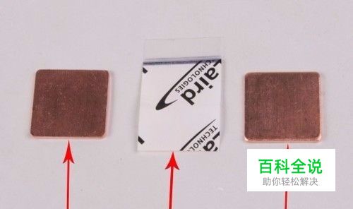 第二步 准备冰蚕纯铜散热片 准备我们的另一个神器,冰蚕纯铜散热片,它对内存和显卡等芯片的散热效果很明显。笔者这次用它来辅助显卡散热,它的底部有白色的附膜,撕开后就露出黑色的胶状物这是强力背胶,直接将它帖在需要辅助散热的地方就可以了。