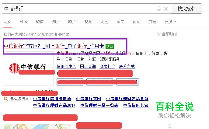 首先,我们打开我们电脑上面的浏览器,然后我们在搜索引擎中输入中信银行,之后按回车键,弹出的界面,我们点击官网;