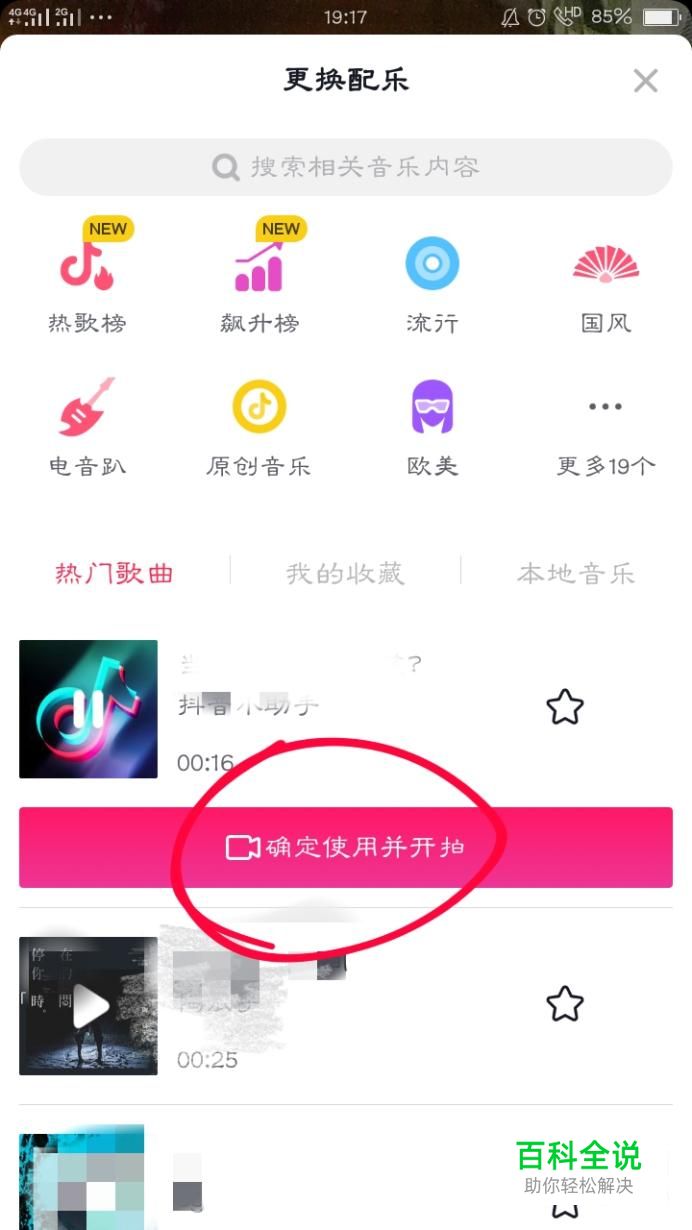 选择一个音乐确定使用并开拍。