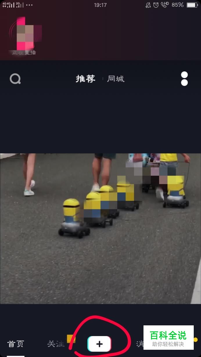 首先打开抖音app,点击图中加号。