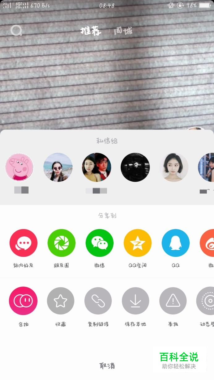 打开抖音,找到想要合拍的视频,点击右方的转发选项。