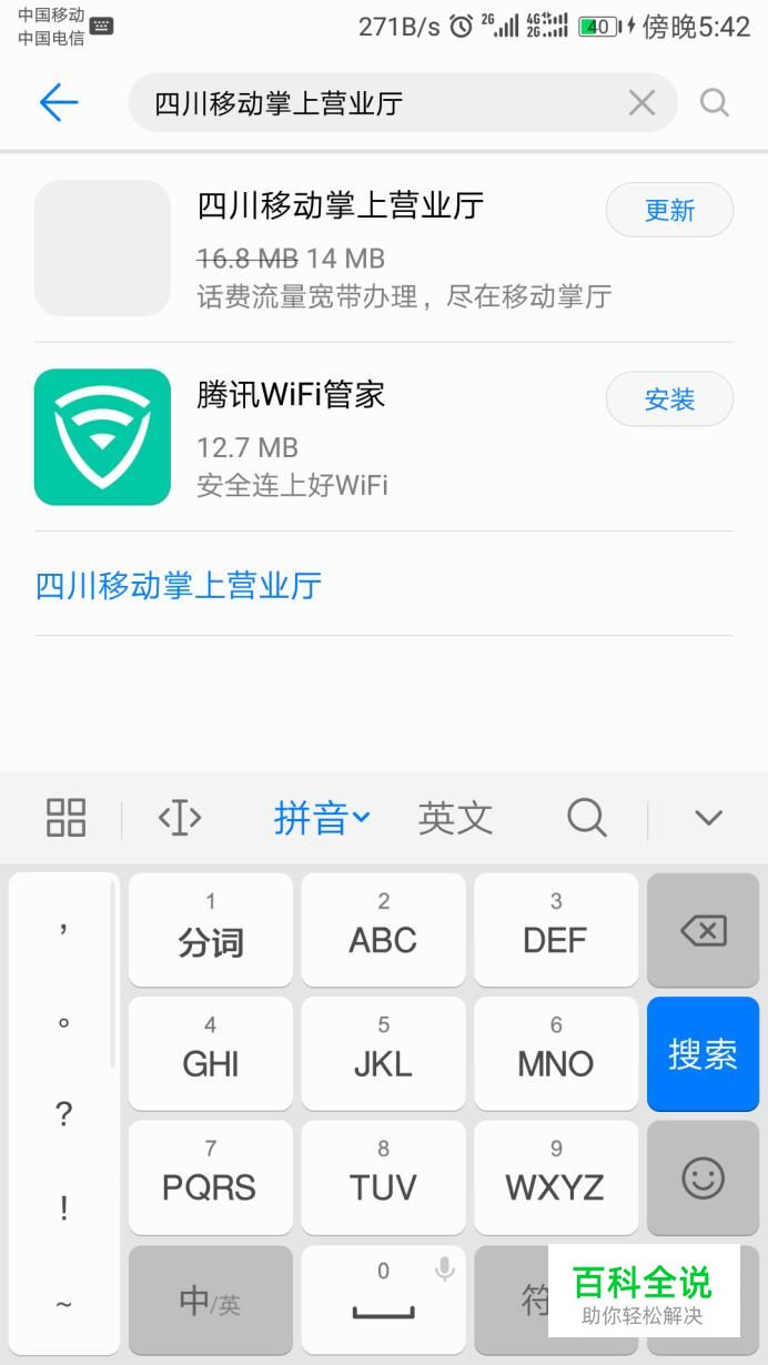 在搜索栏中输入移动营业厅,你是哪个地方的,你就输入那个地方的移动营业厅,点击下载并安装