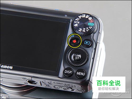 首先依图可找到佳能SX210 IS的视频拍摄快捷按键,在任意模式下按下该按键都可以启动视频拍摄功能,但是不会使用特殊效果进行拍摄,仅仅切换到P档程序曝光模式进行拍摄,但在色彩强调、色彩交换模式下可以启用特殊效果拍摄。同时也可以将模式转盘设置到视频拍摄档进行视频记录。