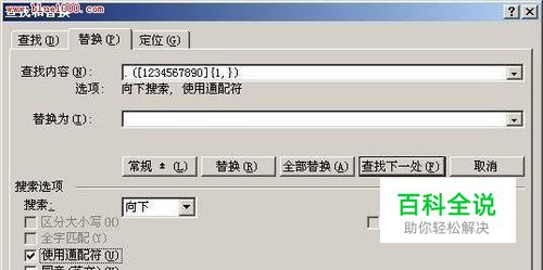 最舍得的方法 笔者还负责为单位职工发放工资,每当员工支取工资时,笔者一般都会将工资条中不足1元部分舍去,大多数情况下并不进行四舍五入,以免账面出现亏损,所以笔者便发现了此“最舍得的方法”。 ①在Word中同时按下“Ctrl+F”快捷键打开“查找和替换”对话框,点击“替换”标签。 ②在“查找内容”后的输入框中输入“.([1234567890]{1,})”(不含双引号),将“替换为”后的输入框留空(图2)。 ③点击“更多”按钮打开高级选项,确保勾选“使用通配符”选项,最后点击“全部替换”按钮即可将所有工资条中不足1元的零钱部分舍去。 小提示:其中“()”用于分组,“[1234567890]”表示出现方括号中的任一字符,“{1,}”表示只要出现1个前一字符即符合条件。