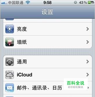 进入iPhone手机或其他升级到iOS 5的苹果设备的“设置”选项,点选“邮件、通讯录、日历”。