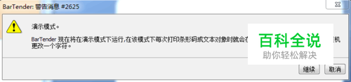 BarTender 10.1条码打印软件可以免费试用30天,但若在30天内不激活,BarTender 10.1将会弹出警告消息2625,提示软件将在演示模式下运行(即每次打印都将更改每个数据字段中的一个数字或字符)。若是出现BarTender 10.1演示模式该怎么办呢?小编来教你怎么做吧!