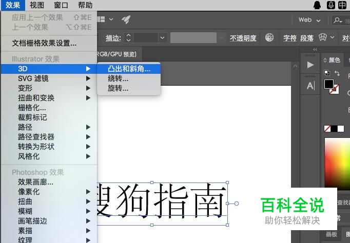 确定之后扩展图形,然后对文字单独部分进行调色就行了,不要忘记将3D处理后的编组给取消掉。