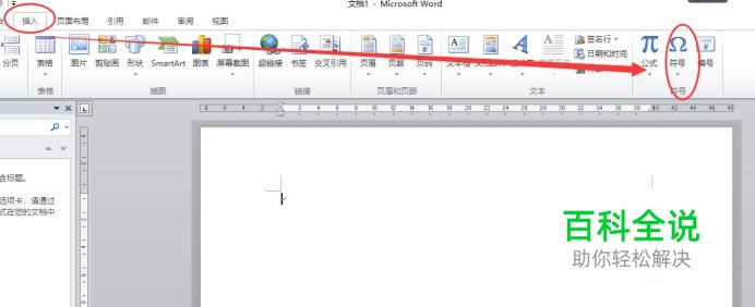 进入之后,点击“插入”,然后选择“符号”,如图所示。