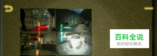 点击"桶" 回到三楼,点击梯子,下楼。 去三楼第二个房间,对圆盘拍照。 去二楼房间,对床边箱子安装"三角板",根据圆盘的照片,选择字母,LMXIV,得到"齿轮"。 去厨房,冰箱,对上面的字母拍照。 去座钟旁边的门,往左走,最里面的房间,对墙上的眼睛,根据刚拍的字母照片拼字,"the eye sees everything ",由于墙上已经有一个眼睛看着了 "the eye sees " 了,所以我们只要拼 " everything " 就可以了,得到"汽油"。 进入院子,开门,使用"汽油"、"齿轮"。 进入,根据下图排放,得到"火柴"。