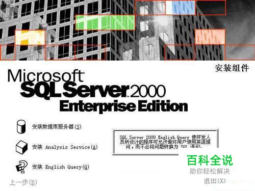将企业版安装光盘插入光驱后,出现以下提示框。请选择”安装 SQL Server 2000 组件“。