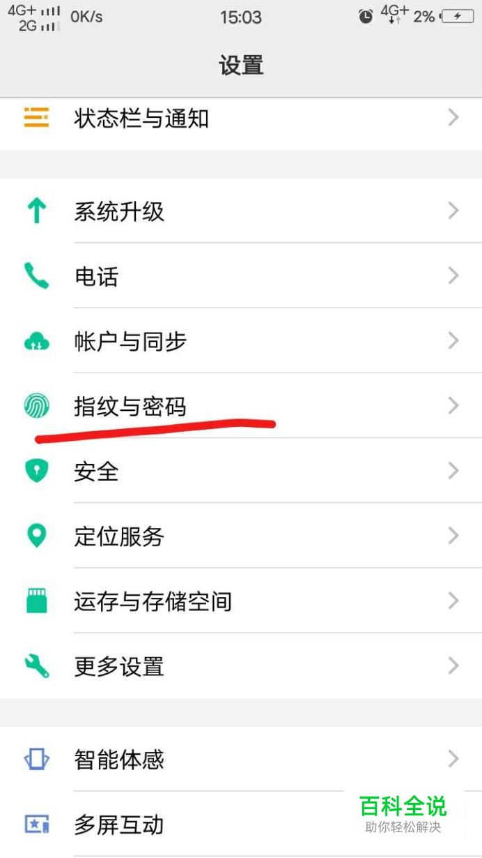 然后,手动找到“指纹与密码”,并且点击进入。