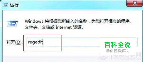 在点击开始菜单后,选择菜单中的“运行”也可以按组合快捷键:Win+R键打开运行对话框。然后在运行对话框的输入框内键入regedit,回车即可打开注册表编辑器,如下图。