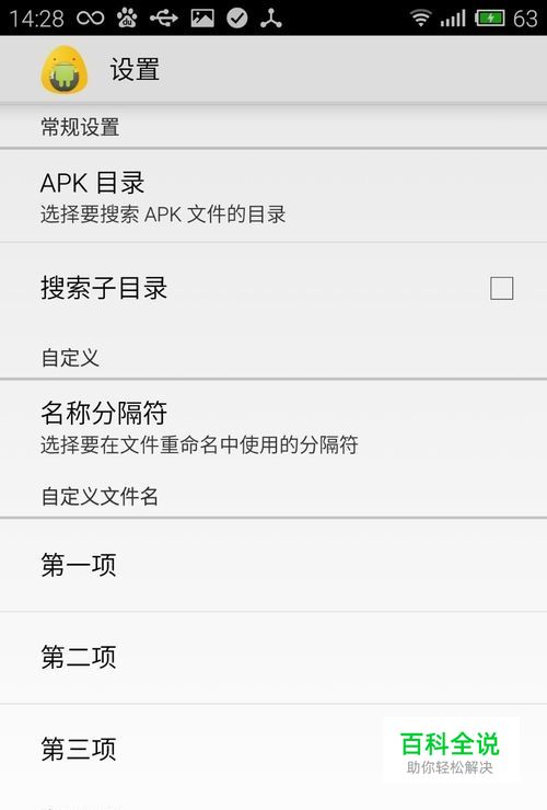 运行apkrenamer后,先点击界面右上角的扳手设置〕图标,在apk文件 目录选项中锁定你保存apk文件的地方。