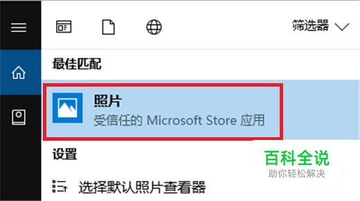在搜索栏输入“照片”,然后上方的搜索结果就会显示应用程序,我们点击进入。