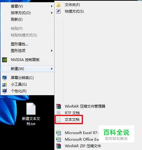 鼠标右键刚刚新建的文本,选择重命名,如果没有后缀名txt,请自行到“文件夹选项”中设置显示文件扩展名;