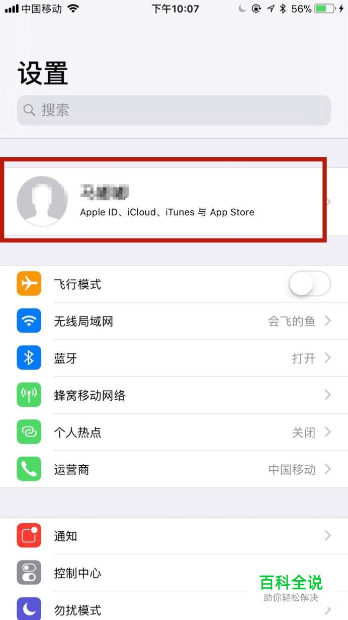 然后点击屏幕上方的个人apple id,如下图所示。
