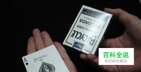 最后,右手拿住牌盒贴住左手掌心,向前推并顺时针的防线转一圈,此时观众的牌就会瞬间跑出牌盒,出现在表演者的手上了,如下图。