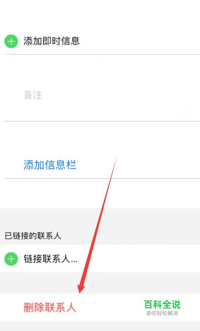 进入之后你会发现在最后面有一个删除联系人的提示,那么点击删除就可以了。