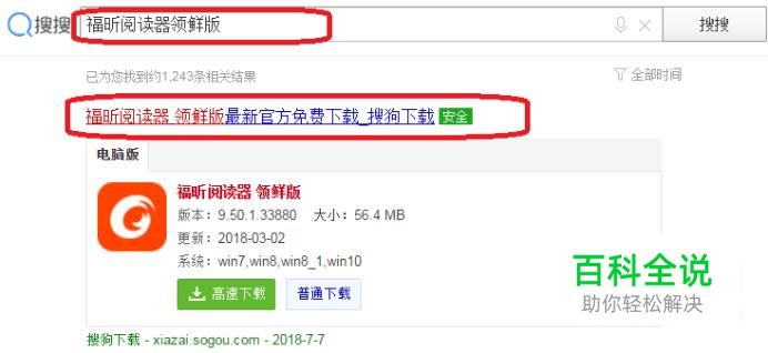 首先,我们需要下载软件,浏览器搜索“福昕阅读器领鲜版”,下载安装到自己的电脑中。