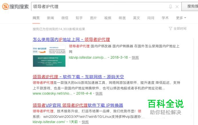 那么怎么看自己的IP已经改变了呢,我们用搜狗搜索一下 IP 就会显示当前的IP地址,我们试试 打开搜狗 搜索。IP ,搜索 自己的已经显示上海的了。